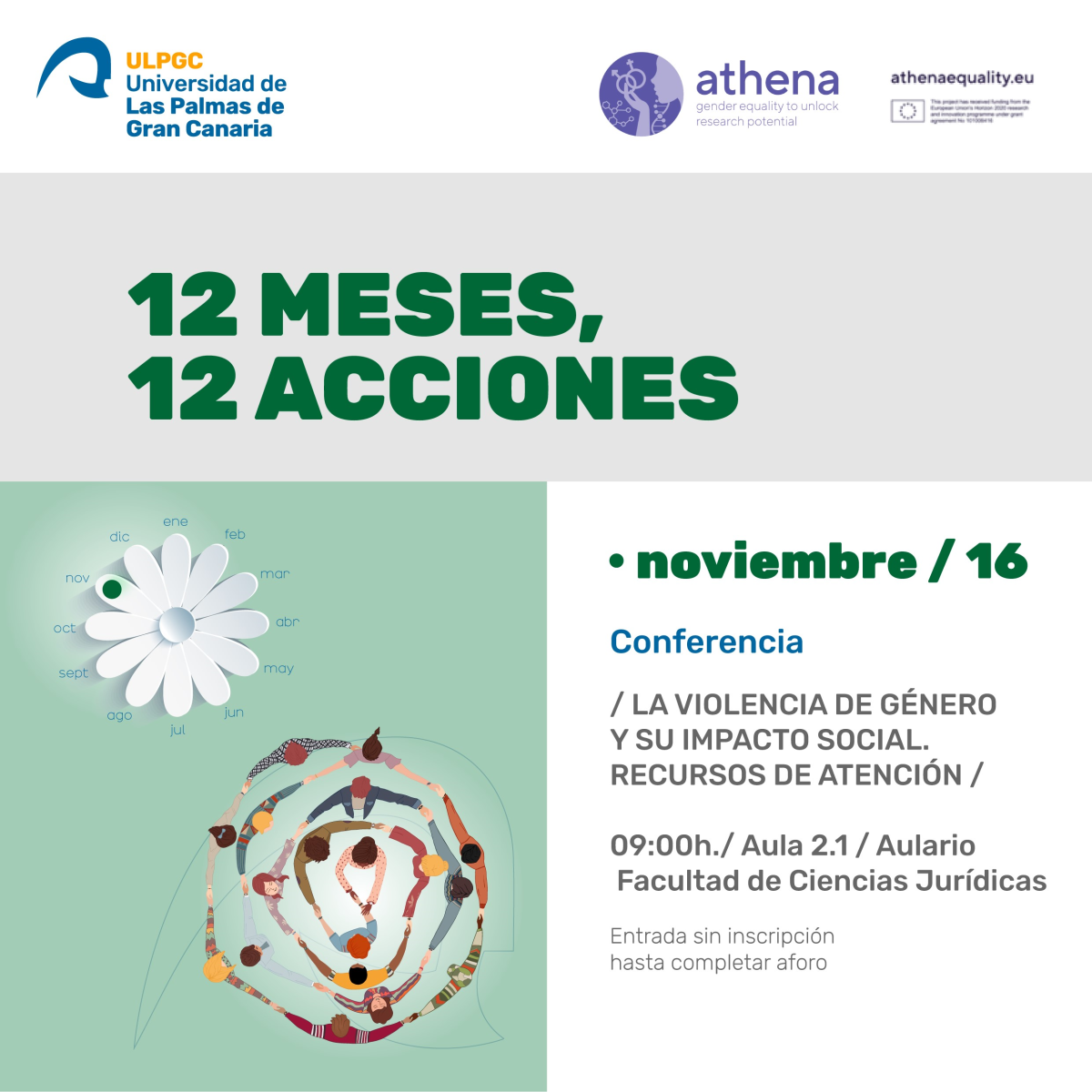 - Día: 16 noviembre. Actividad coordinada por la dirección de igualdad. Hora: 09:00 a 10:30 Lugar: Facultad de Ciencias Jurídicas, aulario, aula 2.1 Título: "La violencia de género y su impacto social. Recursos de atención".