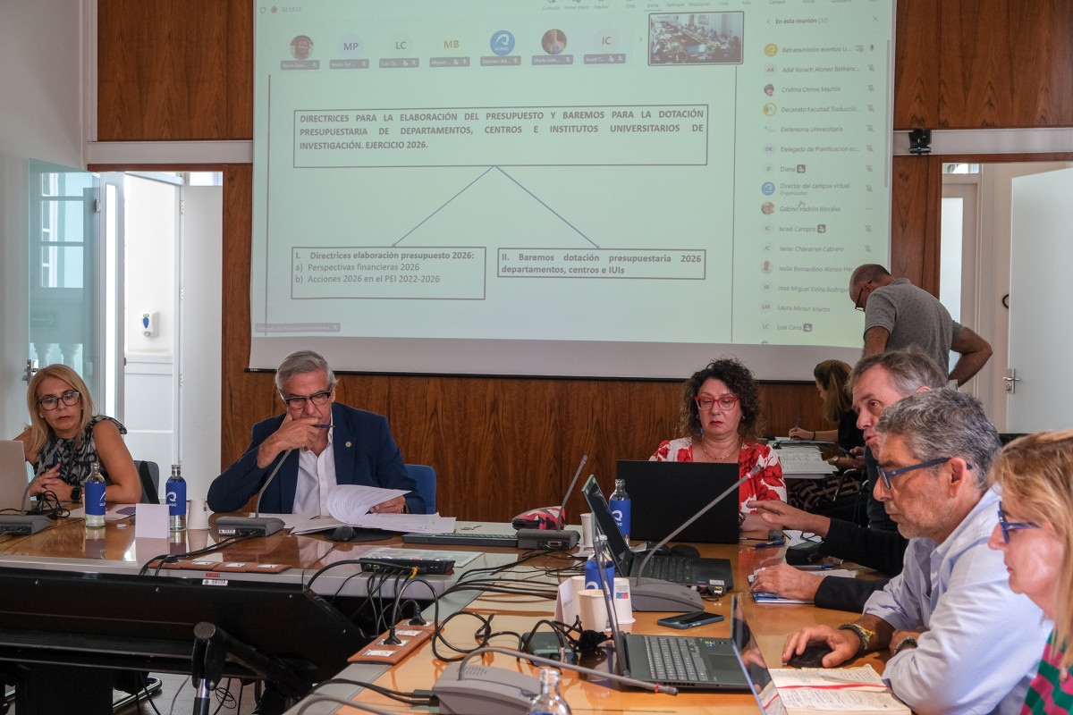 El Consejo de Gobierno de la ULPGC, presidido por el Rector Lluís Serra en sesión ordinaria, el 4 de noviembre, ha aprobado las directrices para la elaboración del presupuesto de la ULPGC 2026, así como los baremos para la dotación presupuestaria de los centros, departamentos e institutos universitarios de investigación de esta institución.