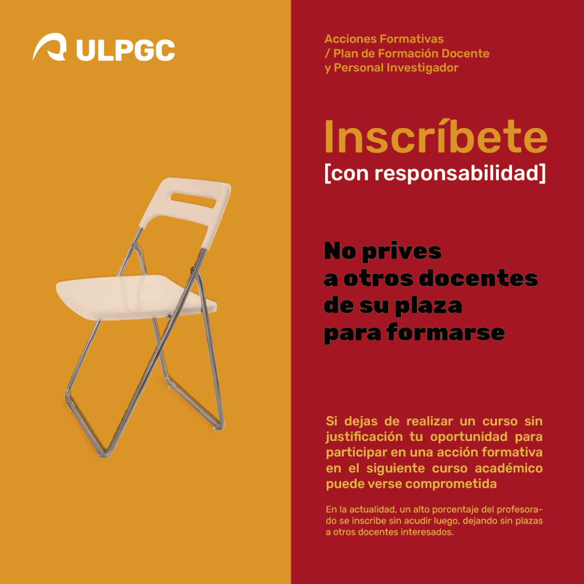 Nueva normativa del plan de formación: para fomentar la solidaridad y la corresponsabilidad, quienes no asistan a un curso sin justificación no podrán inscribirse en el siguiente curso académico. Pincha en este enlace para conocer más información.